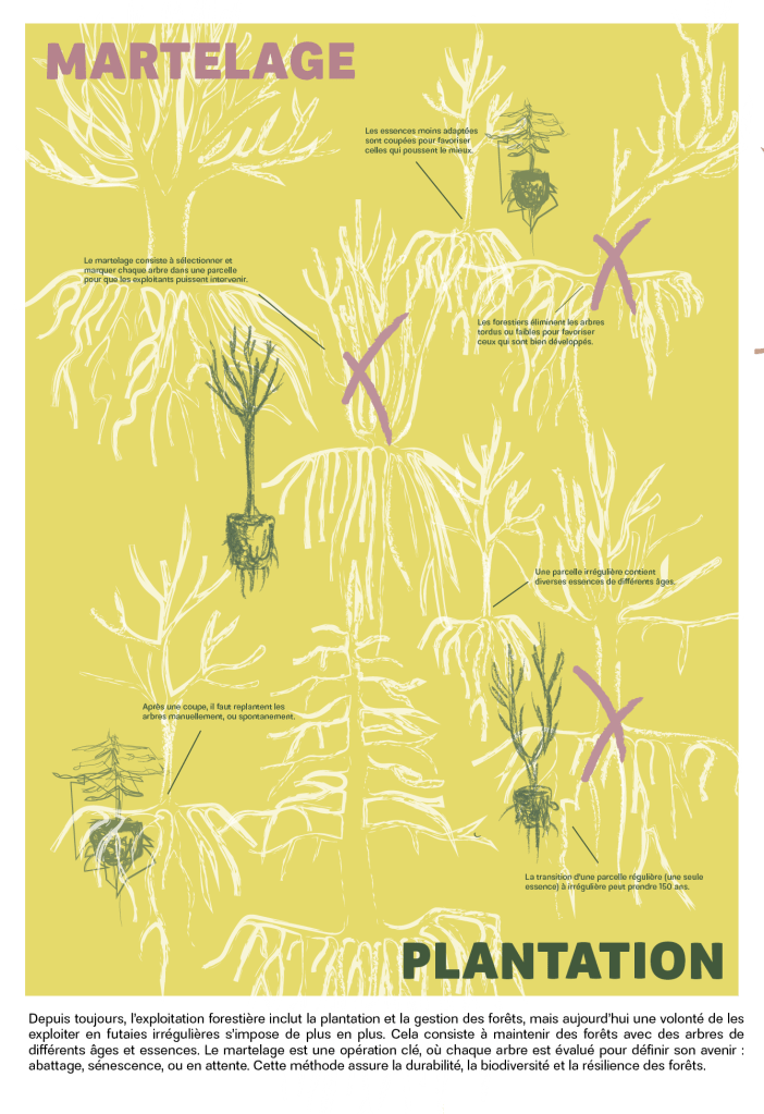 Un atelier d’initiation aux démarches en design. Cet atelier s’est déroulé en deux temps et avait pour but de sensibiliser les habitants de Germaine, dans la Marne (51), à la gestion durable des forêts et à l’univers du design.
