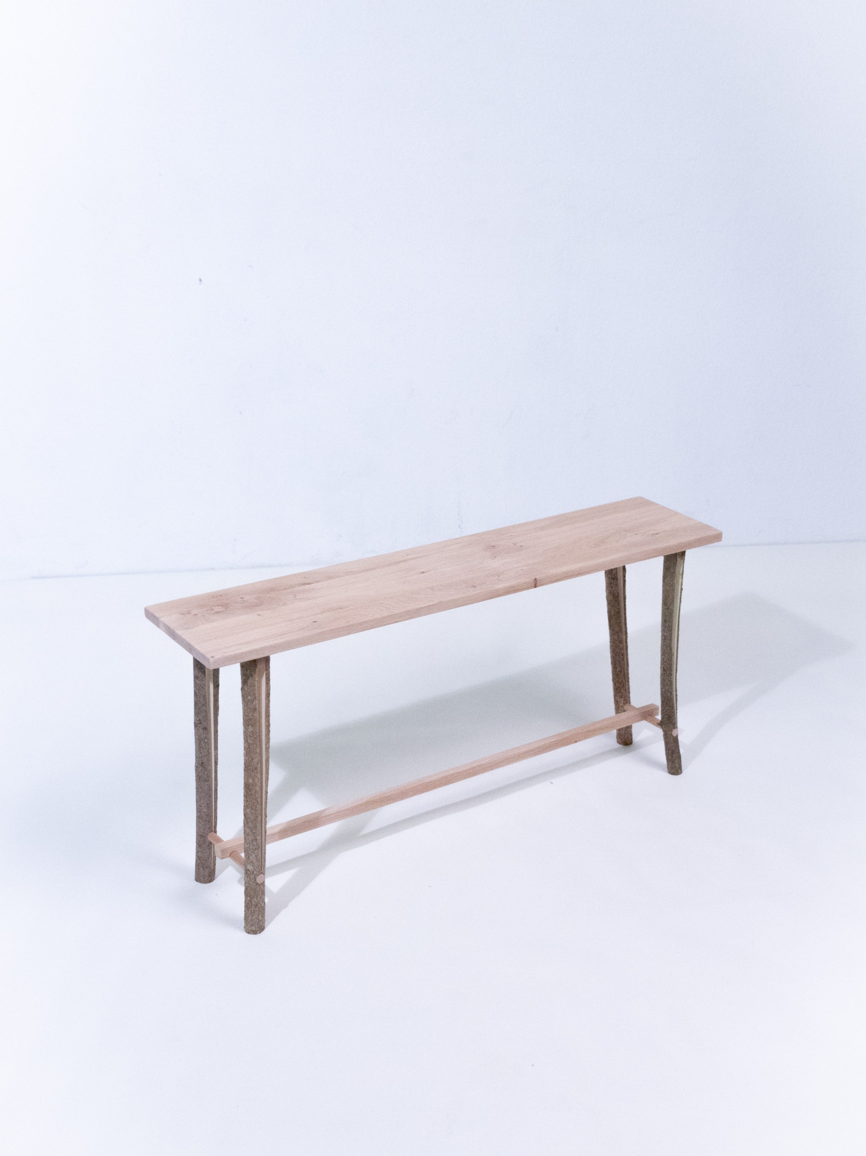 Cette collection explore notre relation aux matériaux de construction, en questionnant leur usage traditionnel. Chaque pièce comporte des greffes de matières non-standards, issues de l’exploitation forestière. considérés presque comme un rebut, les cîmes et les branches ont pourtant un potentiel structurel important et une valeur environnementale qu’il est dommage de ne pas exploiter.